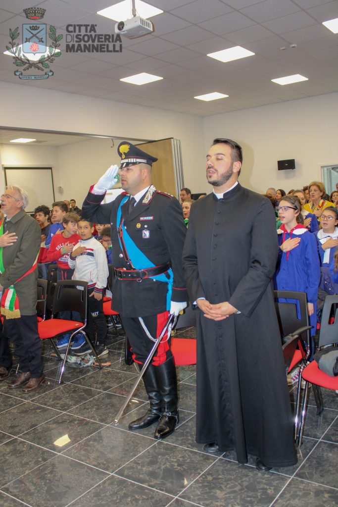 Alla cerimonia hanno partecipato il Sindaco, Leonardo Sirianni, il Capitano della Compagnia di Soveria Mannelli, Cap. Francesco Zangla, il Parroco di Soveria Mannelli, Can. Roberto Tomaino, il dirigente scolastico dell’Istituto Comprensivo “G. Rodari”, Dott. Francesco Saverio Patrizio, e gli alunni delle classi IV e V della Scuola Primaria di Soveria Mannelli.