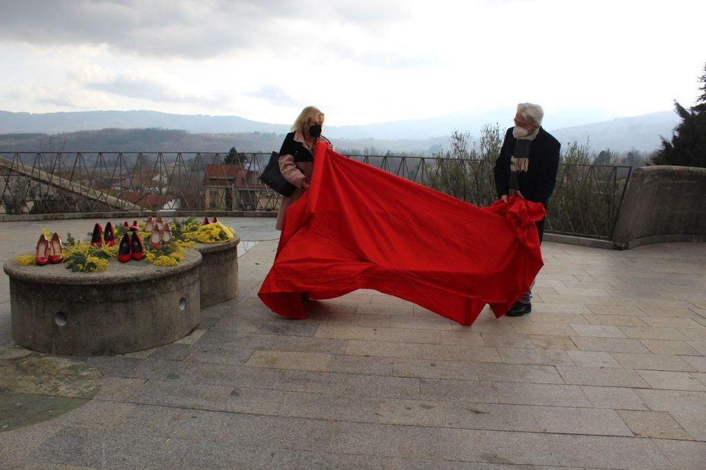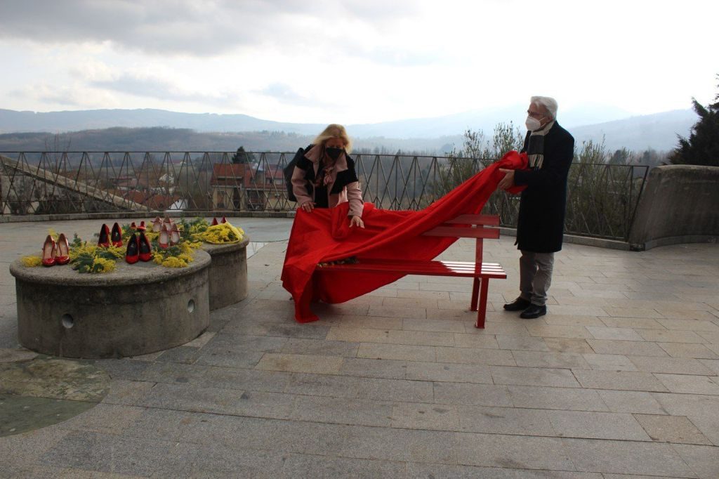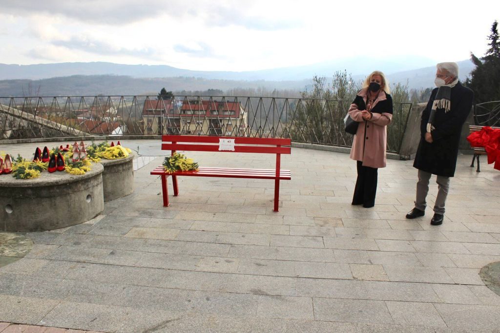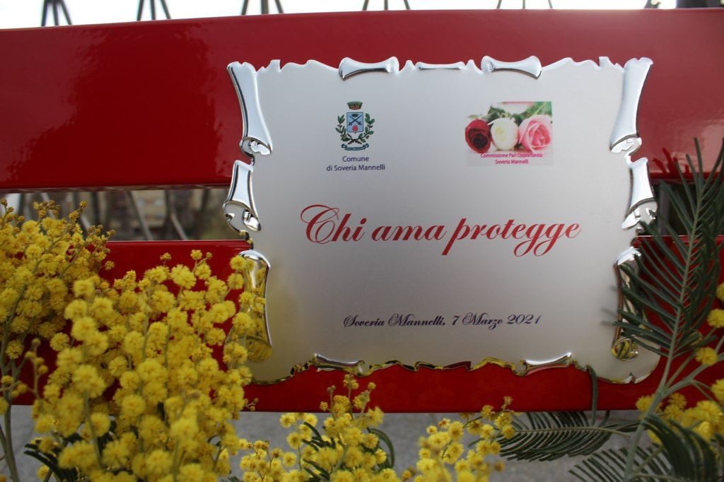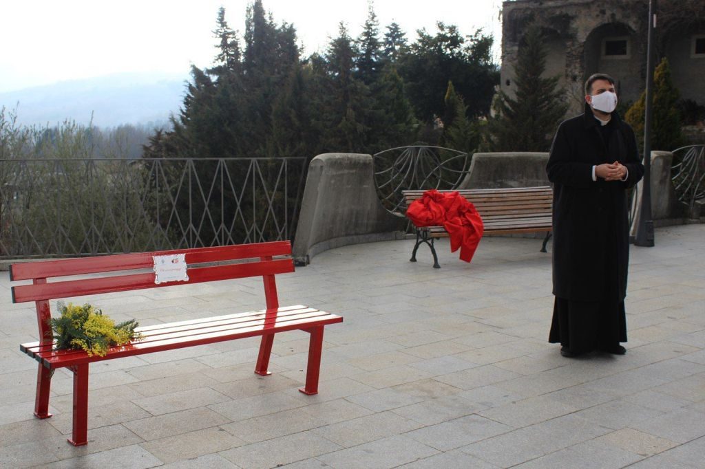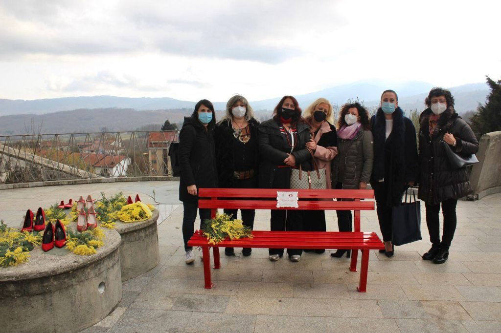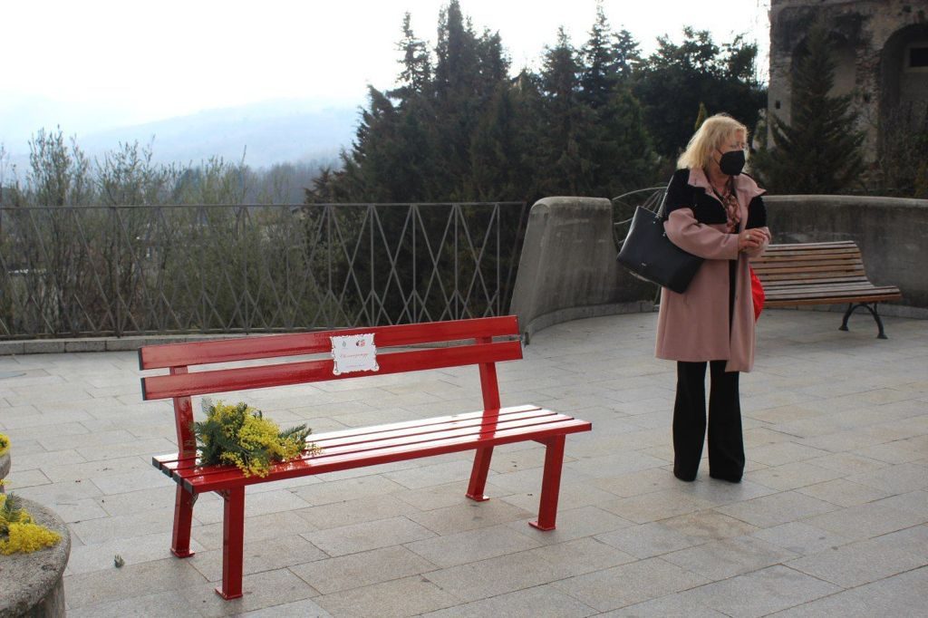 Inaugurazione della panchina rossa, simbolo della lotta per l’eliminazione della violenza contro le donne, 7 Marzo 2021.