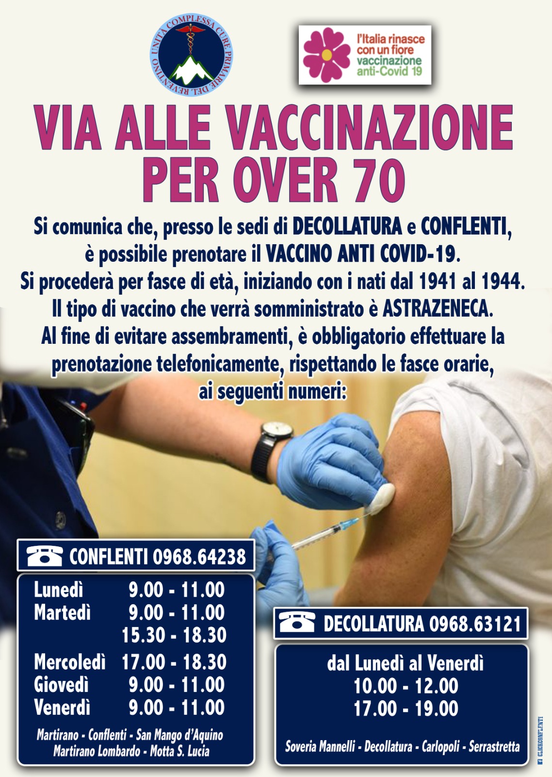 Si comuncia che presso le sedi UCCP di Decollatura e Conflenti è possibile prenotare il vaccino anti COVID-19. in allegato la locandina con i riferimenti telefonici